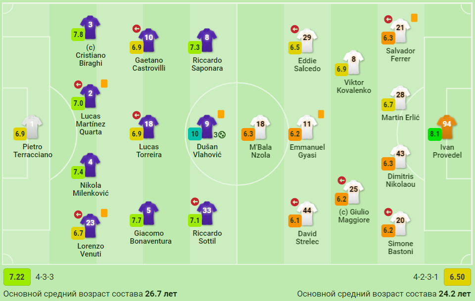 Кращим гравцем матчу визнаний автор хет-трику, форвард "Фіорентини" Душан Влахович – 10,0 і 10,0 відповідно.