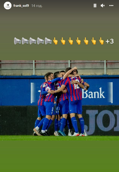 Напередодні команда Франа перемогла "Реал Ов'єдо" 1:0, а футболіст привітав партнерів у своєму Інстаграмі.