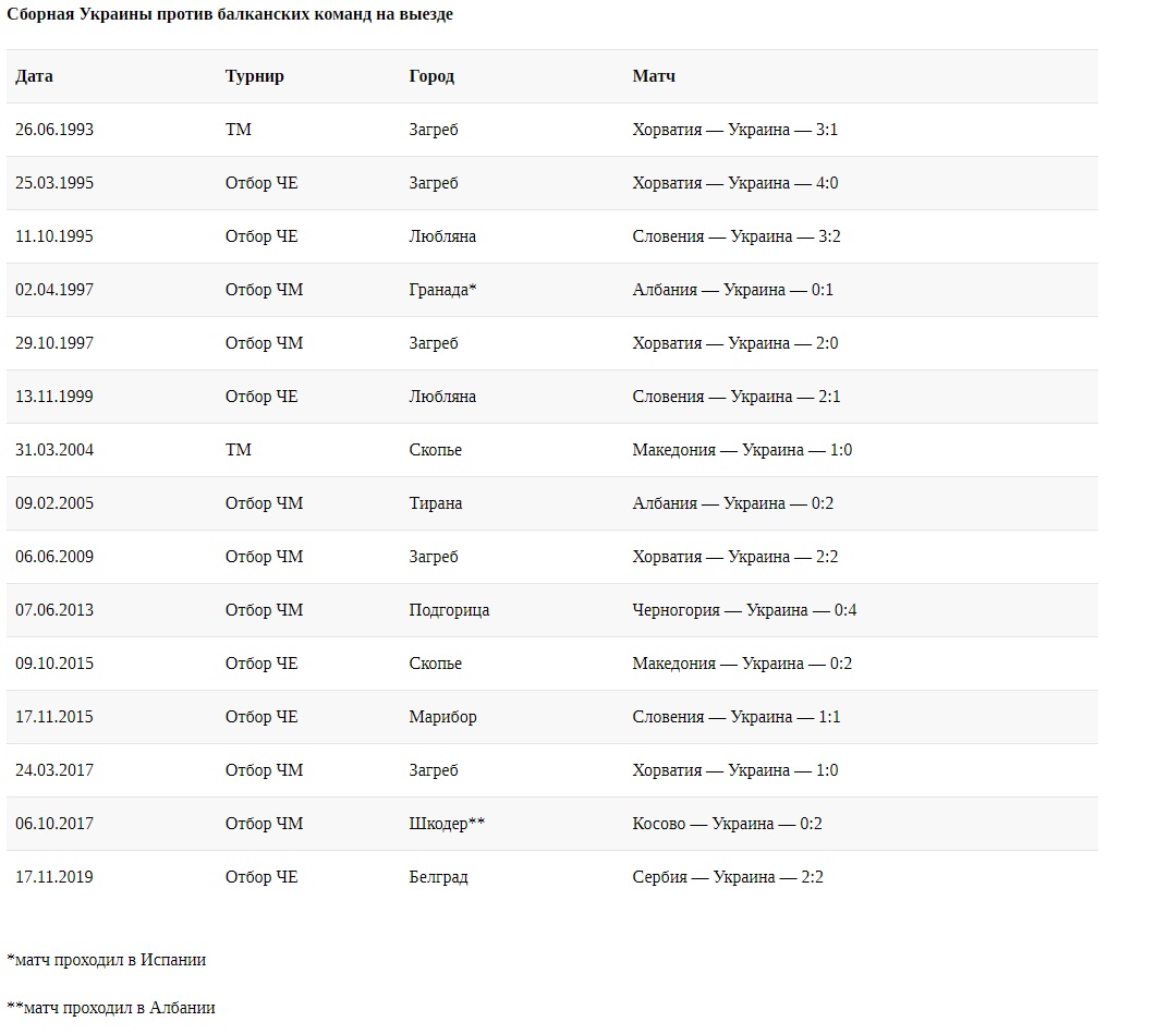 Більшість виїзних успіхів українців припали на відбори на мундіаль, тоді як у кваліфікаціях на Євро баланс негативний. Тричі синьо-жовті перетиналися з балканцями в плей-офф за вихід на великий турнір. У 1997-му сильнішими виявилися хорвати, в 1999-му - словенці. Реванш з останніми трапився в 2015-му.