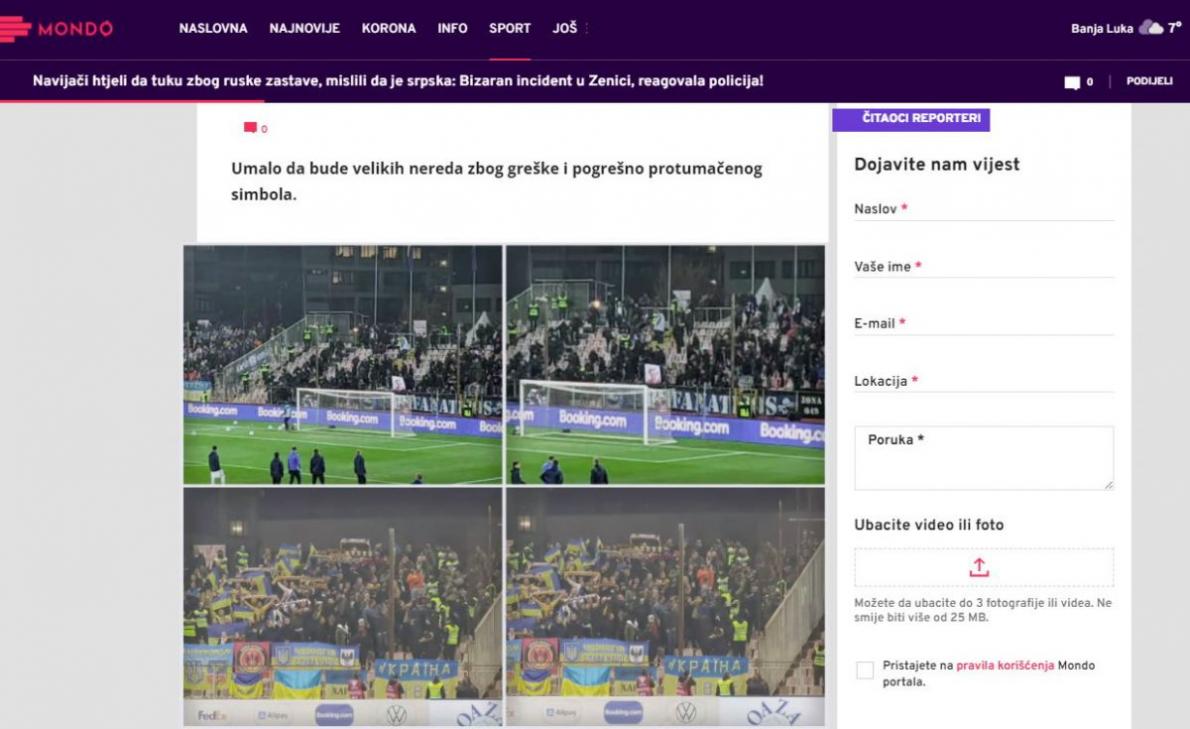 "Незвичайний інцидент в Зеніці: вболівальники Боснії та України мало не побилися через російський прапор", - звертається до неприємної ситуації на трибунах Mondo.