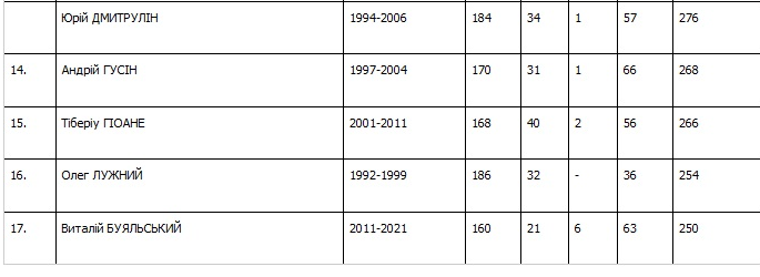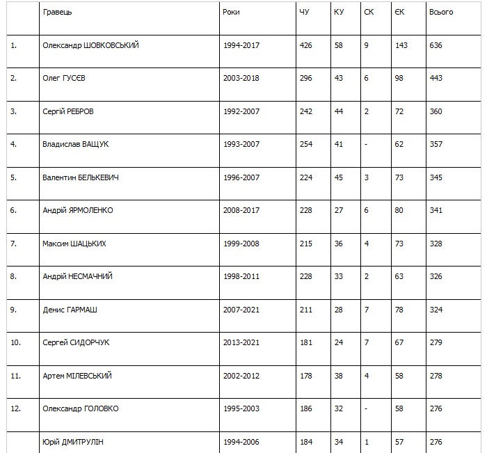 Гравці, які провели 250 матчів за «Динамо» за роки незалежності (1992-2021)