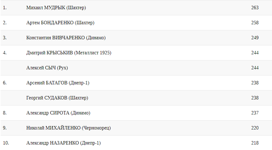 Зазначимо, що на другому місці Артем Бондаренко, А на третьому - динамівець Костянтин Вівчаренко.