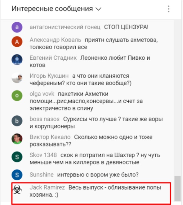Протягом всієї програми адміни Youtube-каналу регулярно видаляли негативні коментарі про Ріната Леонідовича. Потрібно визнати, що багато хто з них дійсно були різкі і гострі. Але політика медіа холдингу викликає питання.