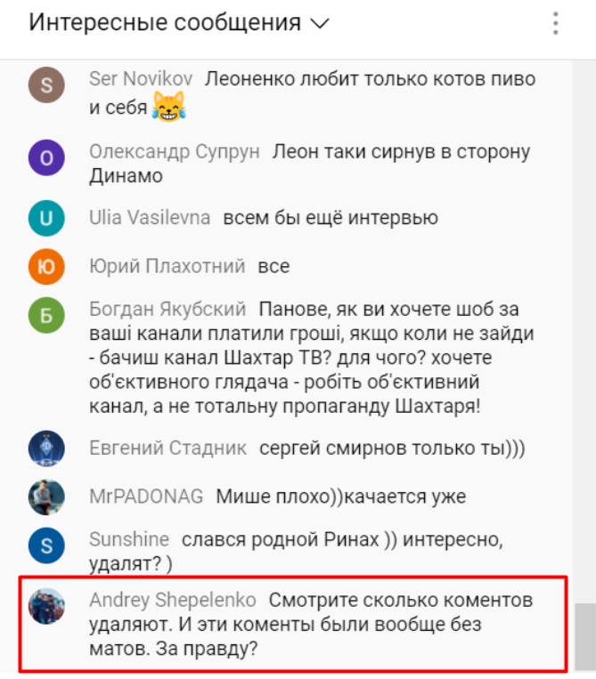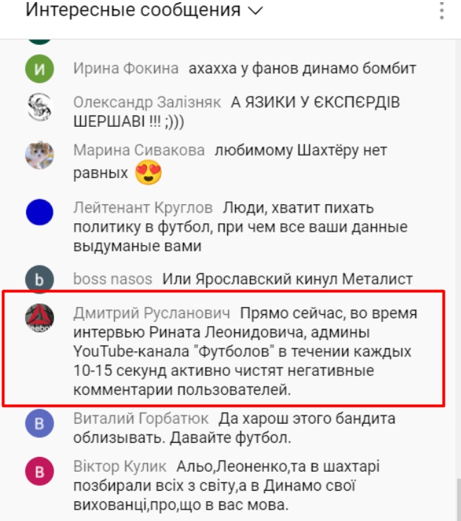 Адміни Youtube-каналу "Великий футбол" видаляють негативні коментарі про Ріната Ахметова