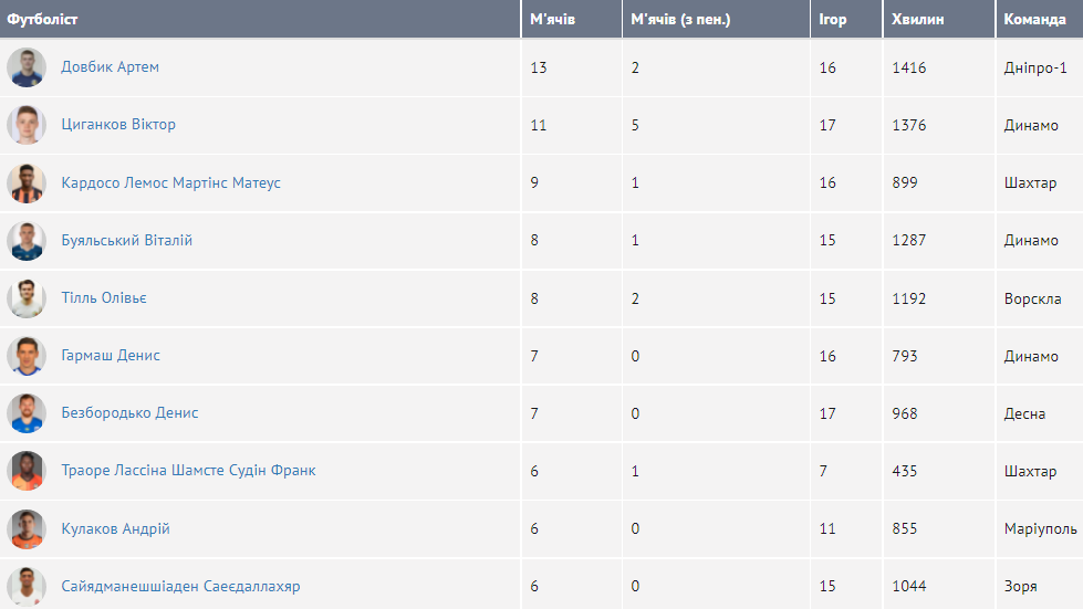 Артем Довбик знову відірвався від Віктора Циганкова у першості бомбардирів.