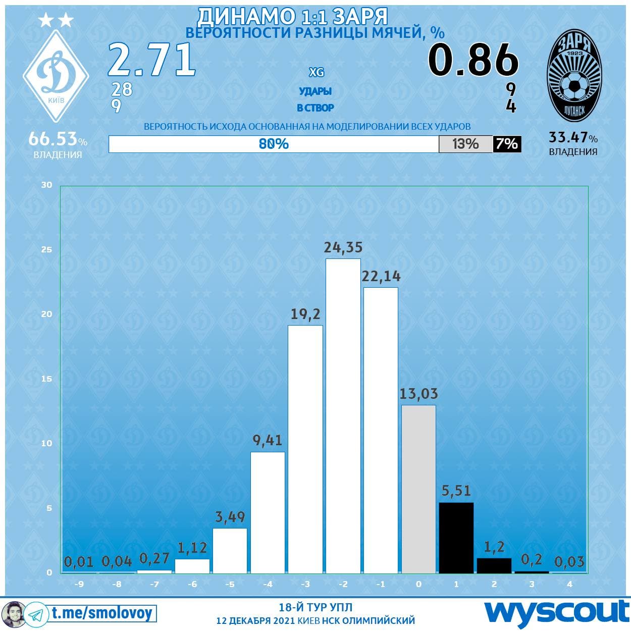 - 19.2% симуляций давали победу с разницей у ТРИ мяча