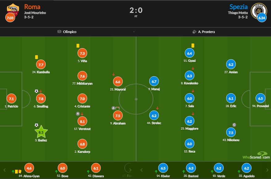 У межах 17 туру чемпіонату Італії "Рома" на своєму полі обіграла "Спецію" з рахунком 2:0.