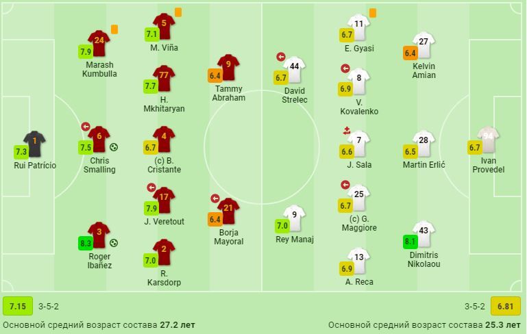 У стартовому складі гостей на поле вийшов український півзахисник Віктор Коваленко та був замінений на 53-й хвилині зустрічі. За час, проведений на полі, 25-річний українець здійснив 53 дотиків до м'яча, віддав 35 точних передач (81%), виграв 4 з 5 єдиноборств, здійснив 1 перехоплення та 1 відбір.