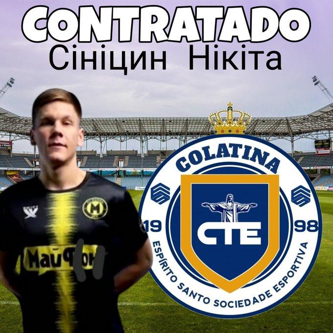 Український півзахисник Микита Синіцин виступатиме за бразильський клуб "Колатіну" з футбольної ліги штату Ешпіріту-Санту.