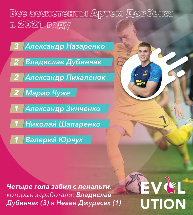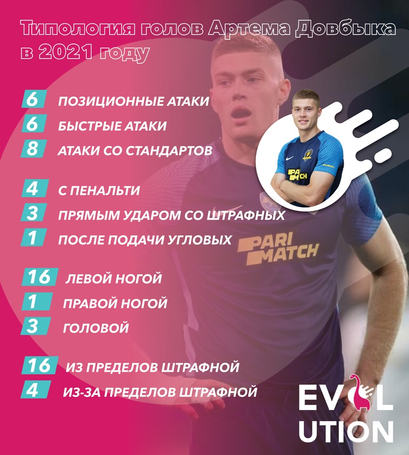 Головна запорука успіху Артема Довбика — це його гра в УПЛ. Сумарні, з урахуванням збірної, XNUMX результативних ударів на рік — наразі чи не феноменальний показник для нападників, які виступають в Україні. І навіть для тих, хто виконує їхні обов'язки. Величезний плюс дніпровського форварда в тому, що він мав багато часу на полі: XNUMX повних поєдинків із XNUMX-ми для гравця атаки — це показник тренерської довіри.