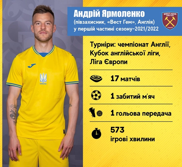 Перша частина клубного сезону-2021/2022 для атакувального півзахисника англійського «Вест Гему» і збірної України Андрія Ярмоленка видалася не зовсім вдалою.