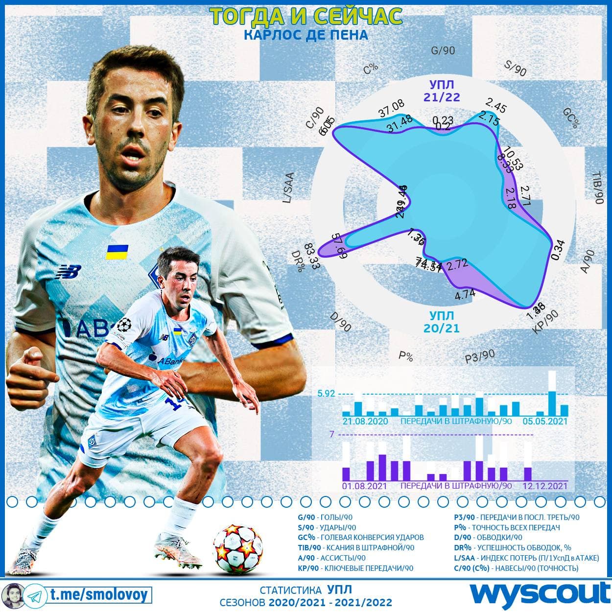 Блогер Михайло Смоловий у своєму Телеграм-каналі розбирає гру динамівця Карлоса де Пени.