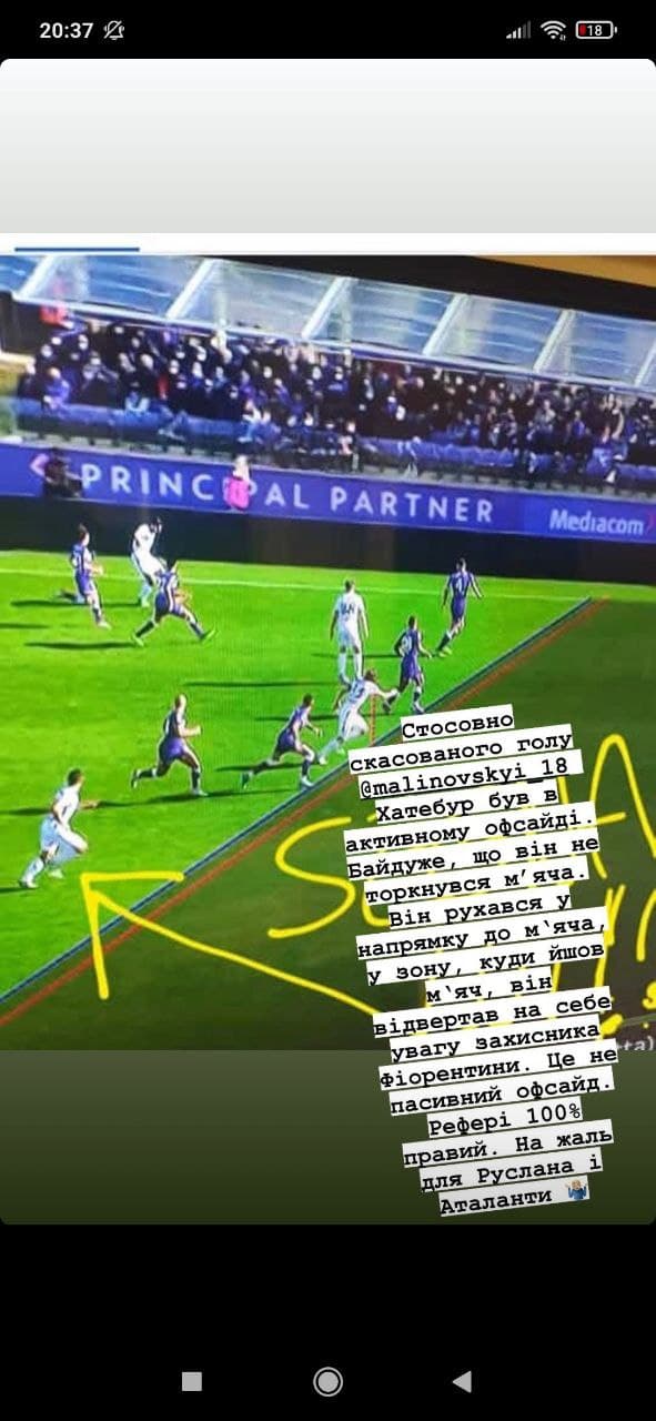 Коментатор ТК "Футбол" Віктор Вацко у своєму Instagram висловився про незарахований Гол Руслана Малиновського в матчі з "Фіорентиною".