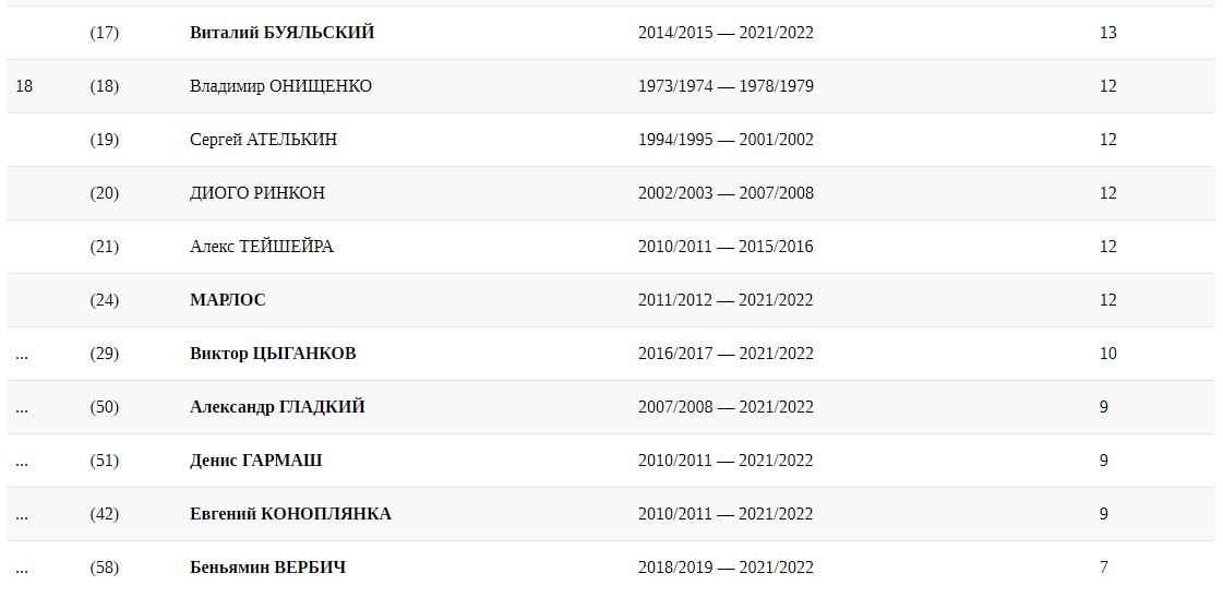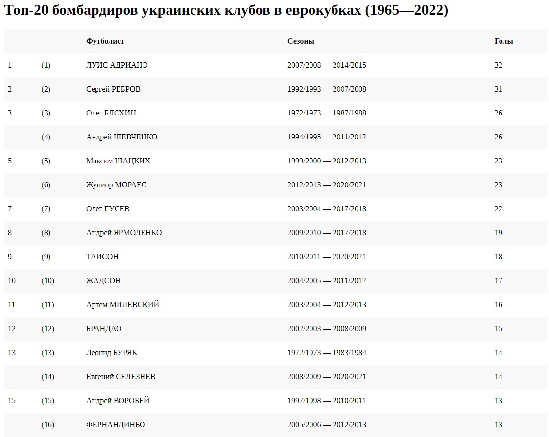Таким чином в топ-20 з гравців за українські клуби в євросезоні-2021/2022 футболістів виявилися тільки двоє - плюс Віталій Буяльський. Для нього сезон пройшов вхолосту, без голів.