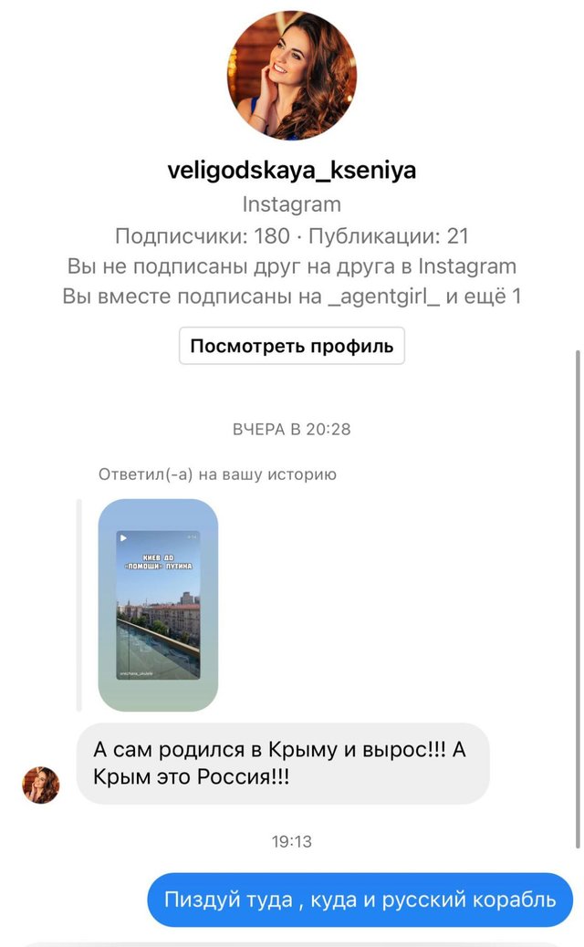 "Пи##уй туди ж, куди і російський корабель". Матвієнко відповів на закиди росіянки, що він народився у Криму