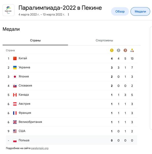 Збірна України завоювала сім медалей у перший день зимових Паралімпійських ігор у Пекіні, повідомляє у своєму Facebook блогер Алекс Беккер.