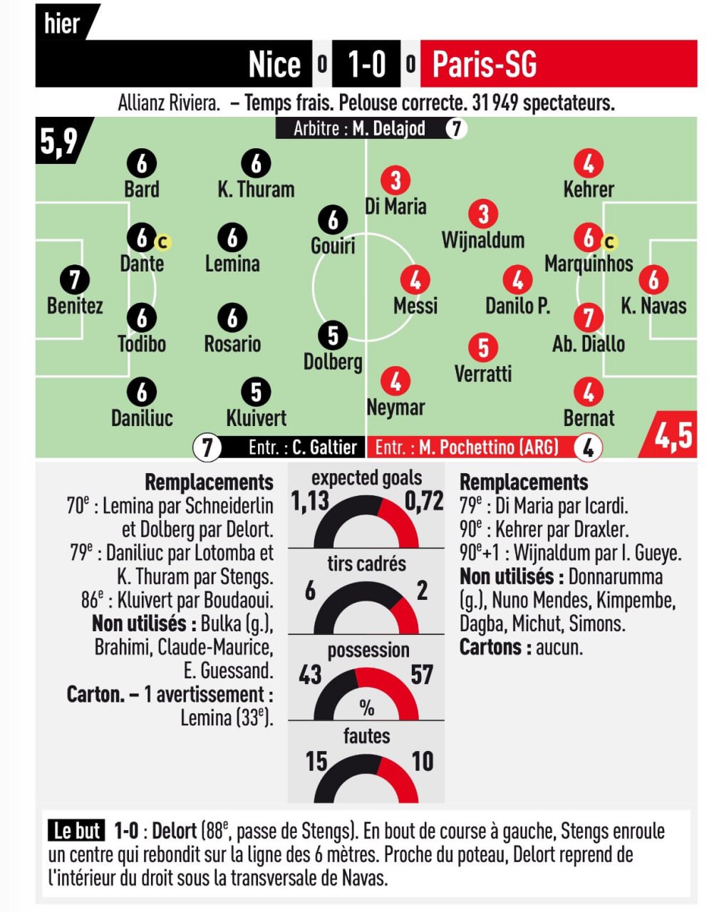 Нападники парижан Ліонель Мессі і Неймар отримали по 4 бали за цю гру. Оцінка нижче лише у двох учасників матчу - Анхеля Ді Марії і Джорджиньо Вейналдума (по 3 бали з 10).