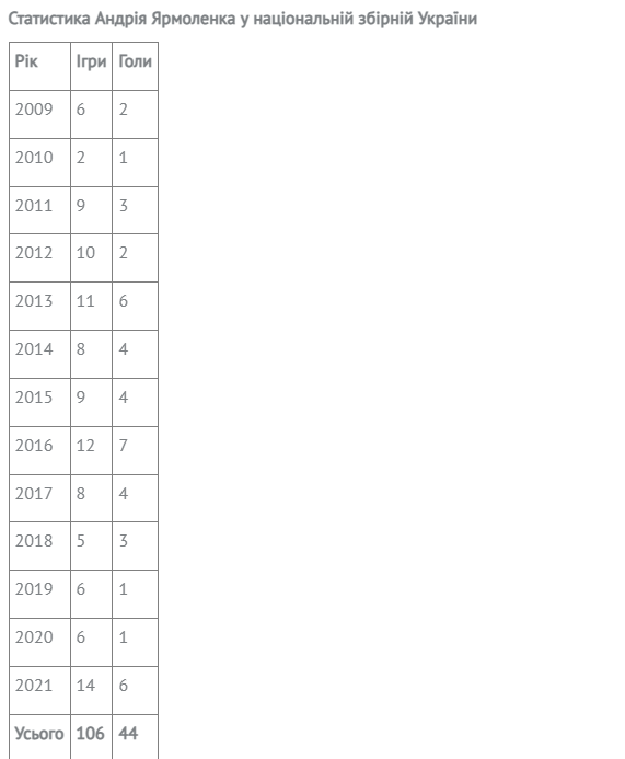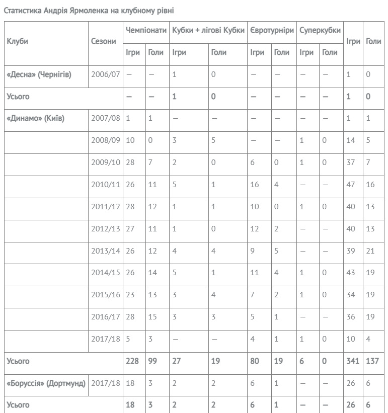Статистика Андрія Ярмоленка в інших офіційних турнірах
