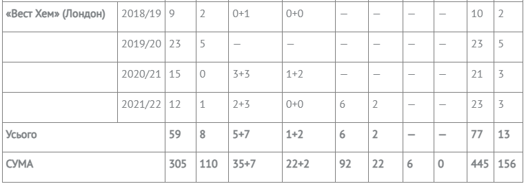 У Трофеї Ліги Англії за «Вест Хем» (Лондон) – 1 гра, 0 голів