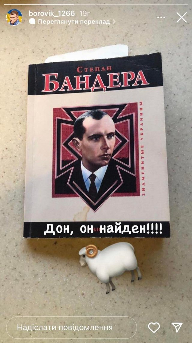 "Дон, він знайдений", – написав 37-річний кіпер в Instagram, прикріпивши фото книги "Степан Бандера (Знамениті українці)".
