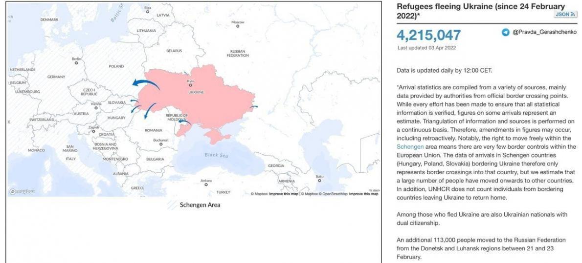 Україну залишило 4,2 мільйона людей, за даними ООН на 04.04.2022