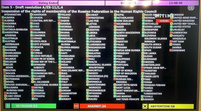 "Військовим злочинцям не місце в органах ООН, які займаються захистом прав людини. Вдячний усім державам-членам, які підтримали відповідну резолюцію ГА ООН та обрали правильний бік історії", – резюмував Кулеба.