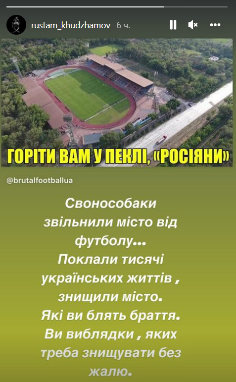 Тренер воротарів «Полісся» Рустам Худжамов у своєму Instagram виступив зі звернення до росіян.