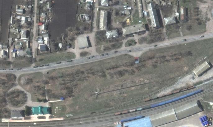Супутникові знімки, зібрані та проаналізовані Maxar Technologies, зафіксували велику колону з військовою технікою Росії на сході України.