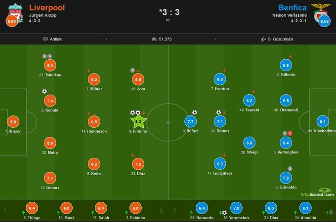 У матчі-відповіді 1/4 фіналу Ліги чемпіонів «Ліверпуль» і «Бенфіка» зіграли в результативну нічию з рахунком 3:3, що вивело до півфіналу мерсисайдців.