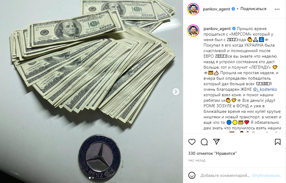 Всі гроші підуть Роману Зозулі у його Фонд і вже найближчим часом на них придбають найнеобхідніше і новий транспорт, а може ще щось. Я обов'язково відзвітую, що вдалося взяти нашим захисникам. Прощавай мій вірний кінь. Слава Україні!" – написав Панков на своїй сторінці у соціальній мережі Instagram.