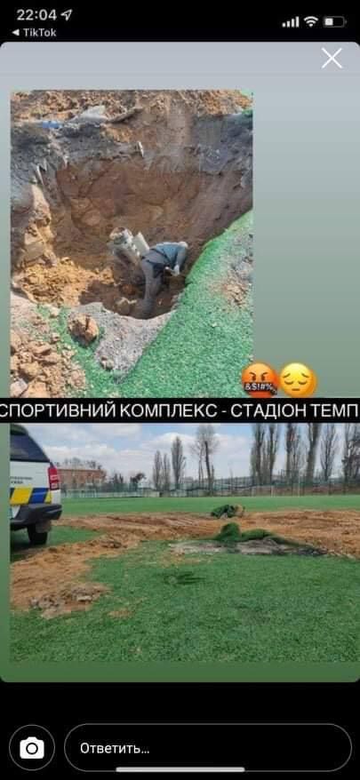На стадіоні "Темп" відновили газон, пошкоджений рашистськими "Ураганами" у березні