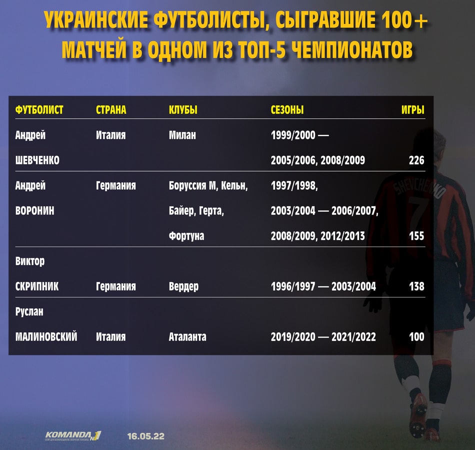 Учора в матчі 37-го туру італійської Серії А Мілан - Аталанта (2:0) український півзахисник гостей Руслан Малиновський провів 100-й матч за бергамців у рамках чемпіонату Італії, пише zbirna.com.