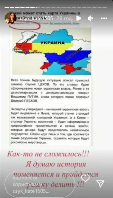 Катерина Усик прокоментувала пропагандистську карту з запланованим у лютому розділом України.