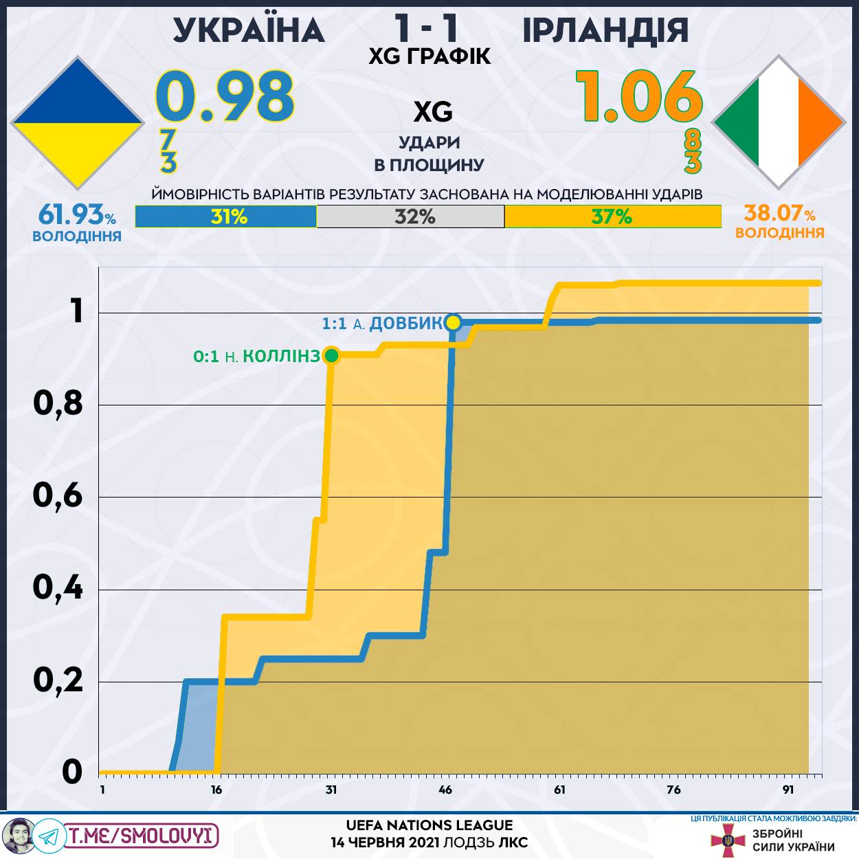 Ірландія забила свій третій big chance момент (0.36 xG), зіпсували два перших.