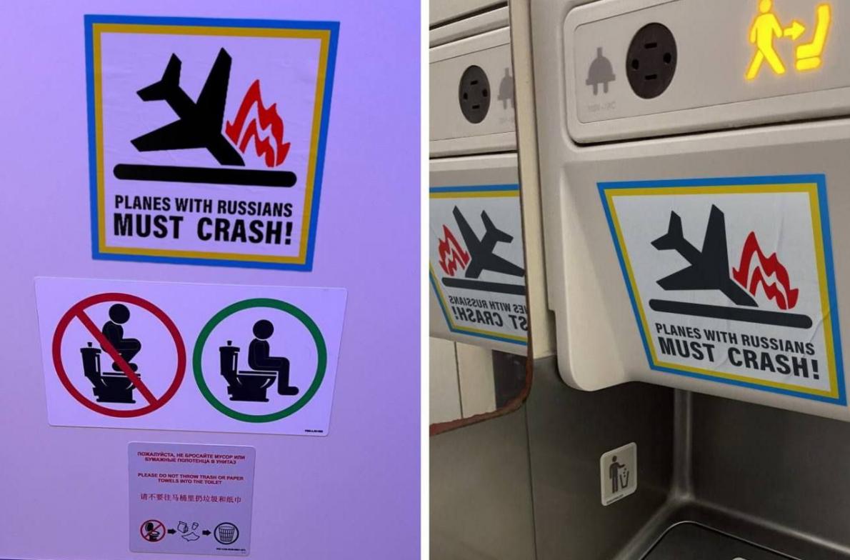 Літаки з росіянами повинні розбиватися". Такі стікери з антиросійськими написами почали ліпити у туалетах лайнерів Lufthansa, Turkish Airlines, Bangkok Airways.
