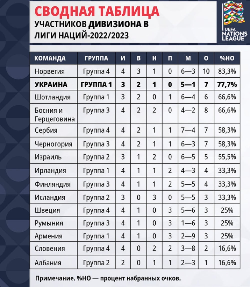 Скориставшись літньою перервою у баталіях Ліги націй-2022/2023, джерело взяло на себе сміливість скласти зведену таблицю всіх учасників Дивізіону В, де у групі 1 виступає збірна України, пише zbirna.com.