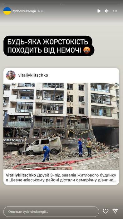Сидорчук - про ракетний удар по Києву: "Будь-яка жорстокість походить від немочі"