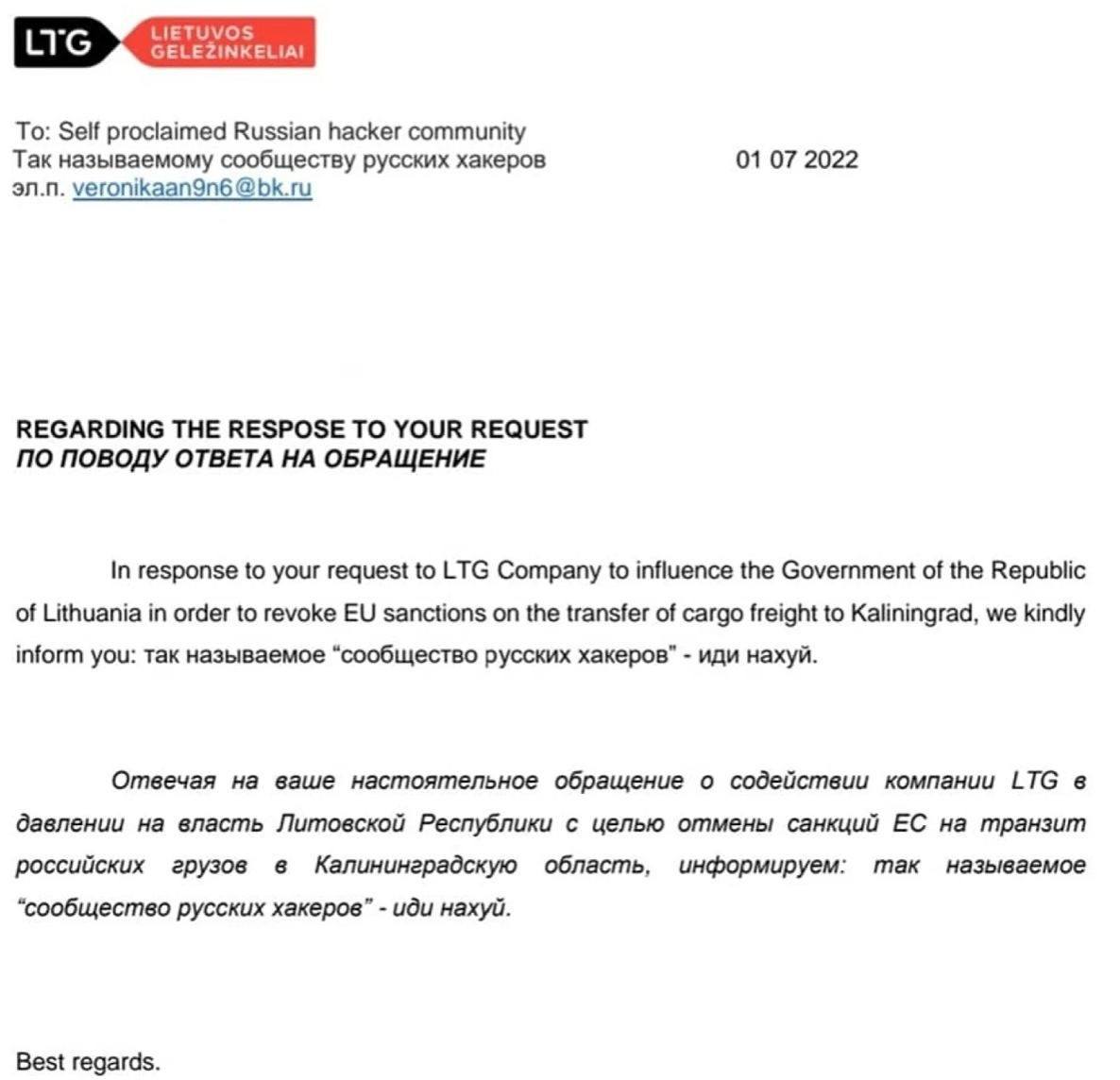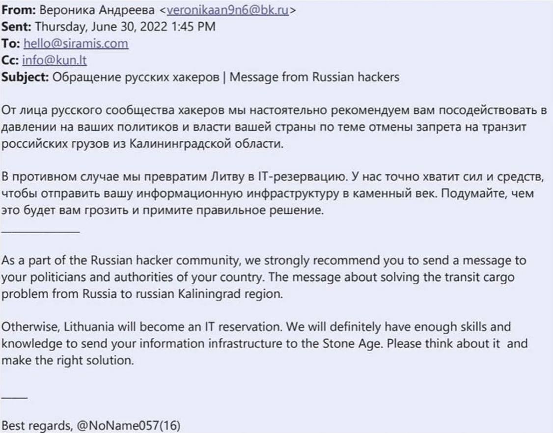 Колишній депутат держдуми рф Ілля Пономарьов на своїй сторінці у Фейсбуці опублікував цікаве листування, в якому хакери, що нібито представляють інтереси рашистів, почали погрожувати IT-сфері Литви.