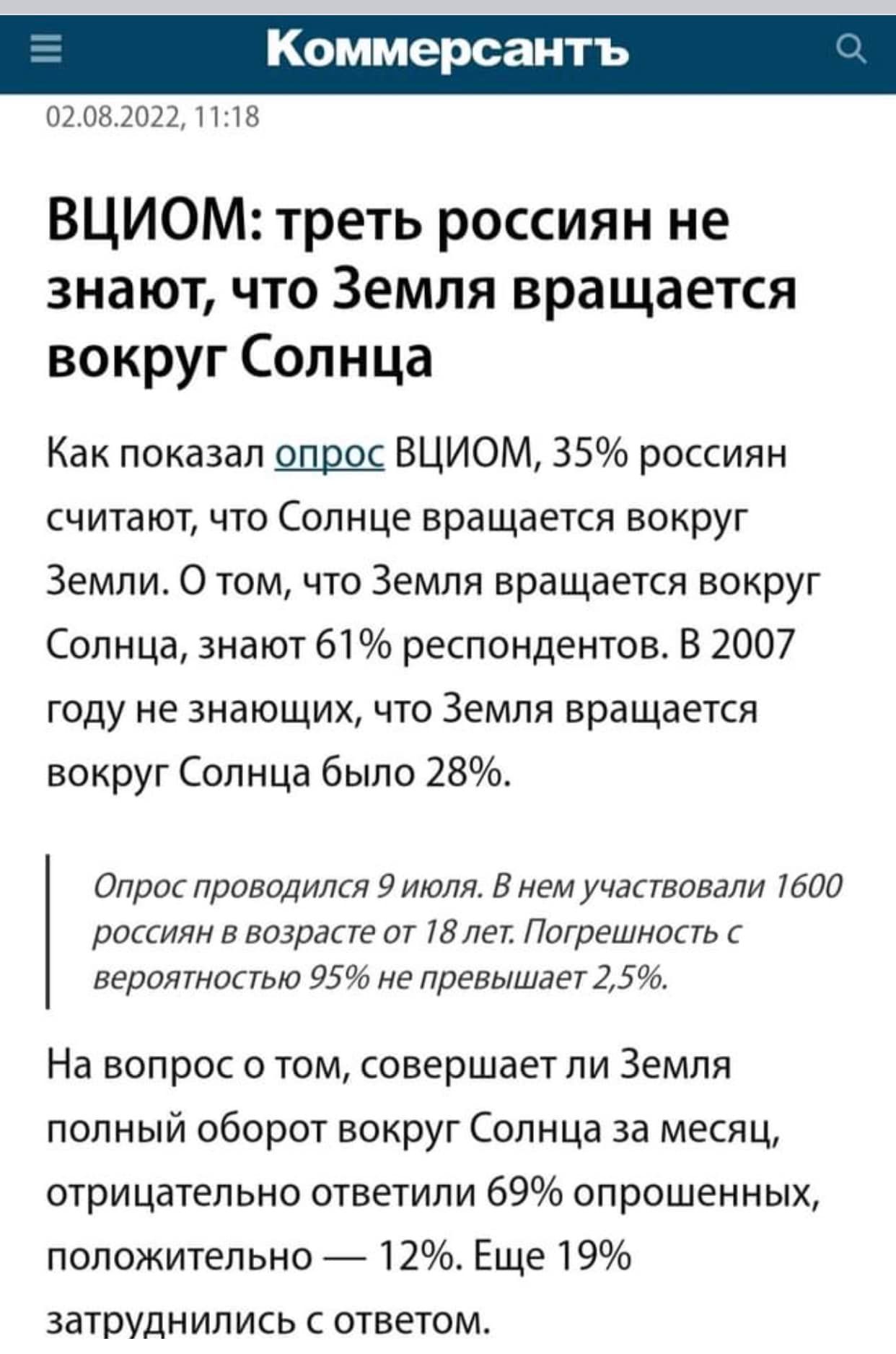 Соціологи ВЦВГД пропонували респондентам оцінити твердження «Сонце обертається навколо Землі». Третина опитаних із ним погодилася.