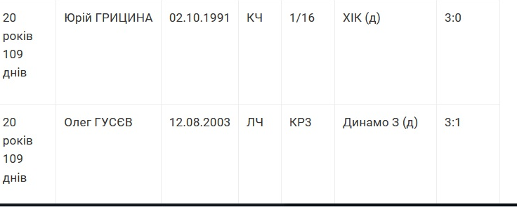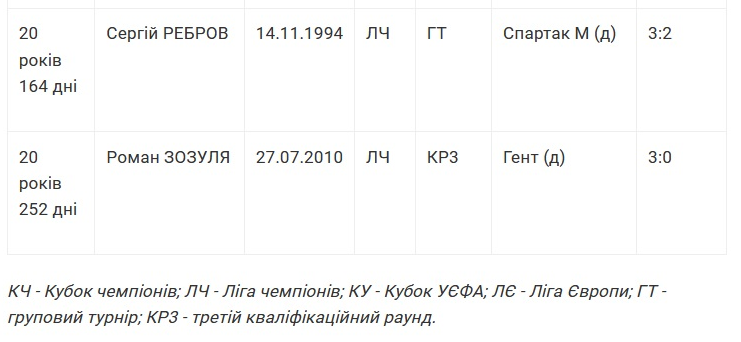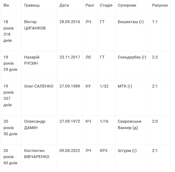 Наймолодші бомбардири-«джокери» «Динамо» у єврокубках