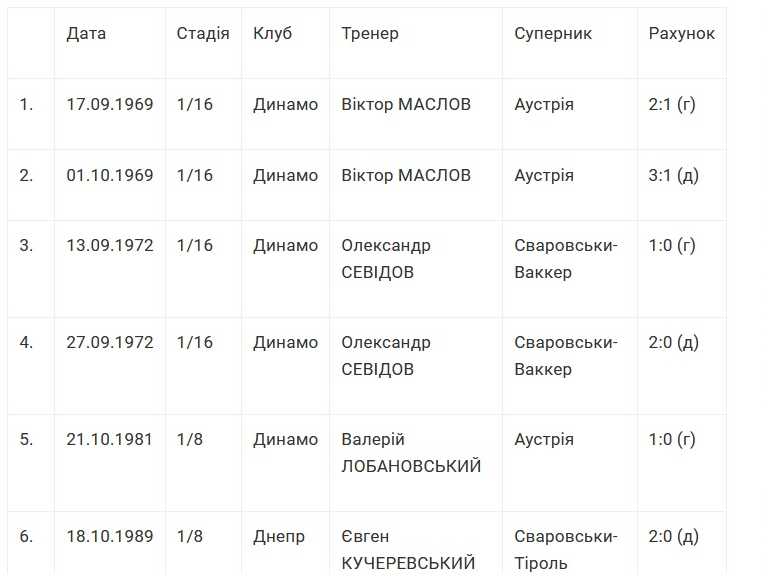 10 перемог українських клубів над австрійцями у Лізі (Кубку) чемпіонів