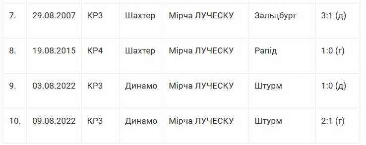 Перемога «Динамо» над «Штурмом» (2:1) стала 10-ю для українських клубів у баталіях з австрійцями у Лізі (Кубку) чемпіонів.