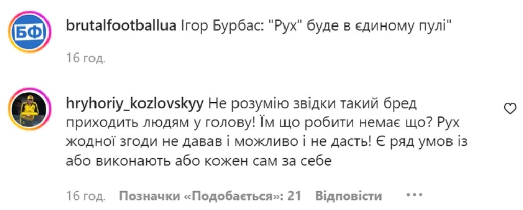 Президент «Руха» Григорій Козловський відреагував на інформацію Ігоря Бурбаса, що клуб увійде в єдиний телепул УПЛ.