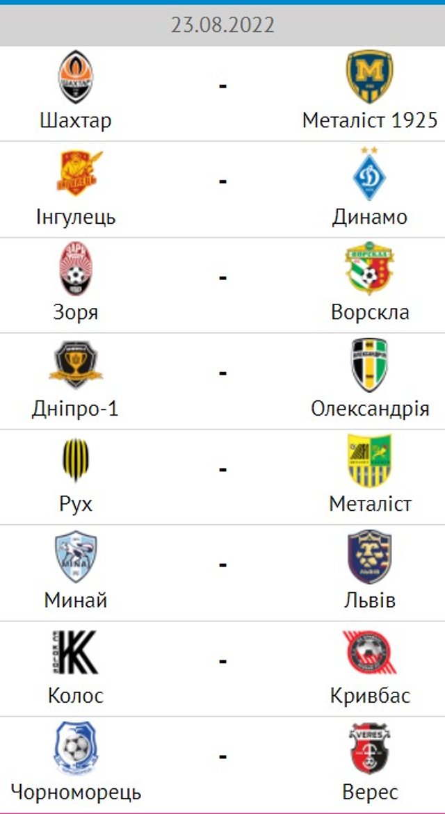 Так, Шахтар розпочне турнір поєдинком з Металістом 1925, Динамо зіграє на виїзді з Інгульцем. Відомі й інші пари: Зоря – Ворскла, СК Дніпро-1 – Олександрія, Рух – Металіст, Минай – Львів, Колос – Кривбас, Чорноморець – Верес.