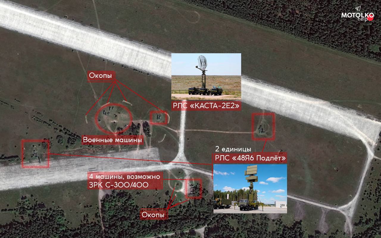 На аеродромі «Зябрівка» знаходяться від 10 до 14 одиниць ЗРК С-400 «Тріумф», 3-ї РЛС «КАСТА-2Е2» та «48Я6 Підліт», 2-а ЗРПК «Панцир»;