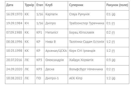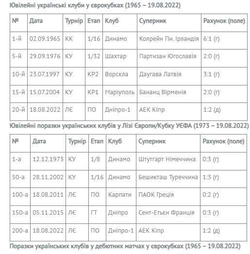 У рамках плей-офф раунду Ліги Європи дніпряни з рахунком 1:2 поступилися команді АЕК (Ларнака). Ця поразка стала першою для українських клубів в історії зустрічей із представниками Кіпру (у 7-й грі). Поразка від АЕКу стала також ювілейною, 200-ю, за час виступів наших команд саме у Лізі Європи/Кубку УЄФА. На своєму полі українські клуби поступалися суперникам 68 разів, в гостях – 130 і на нейтральному полі – 2.