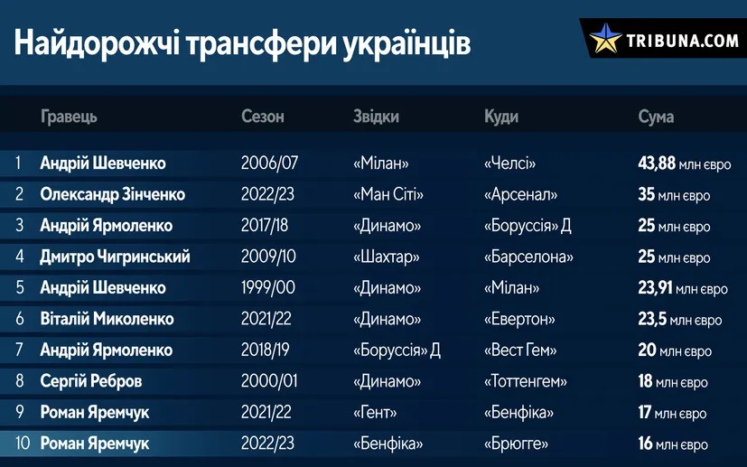 Роман Яремчук потрапив до топ-10 найдорожчих трансферів українських футболістів
