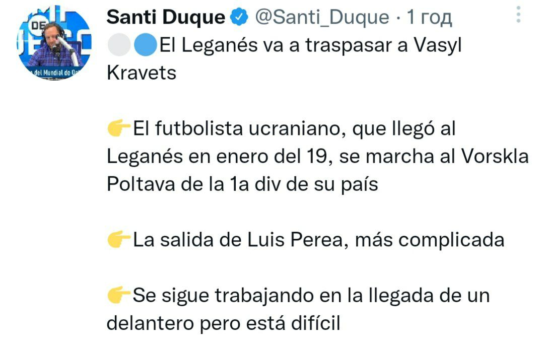 Як повідомляє іспанський журналіст Санті Дуке, захисник "Леганеса" Василь Кравець переходить у "Ворсклу".