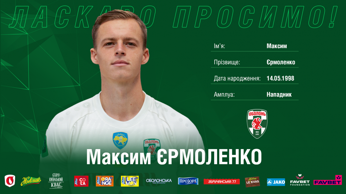 Максим Єрмоленко: “Задоволений стати частиною команди ФК “Оболонь”. Це дужа хороша та амбітна команда! Буду намагатися робити все залежне від себе на користь команди та виконувати завдання поставлені керівництвом клубу. Я дуже вдячний нашим ЗСУ за те, що боронять нашу країну і завдяки їм в нашій країні живе футбол.”