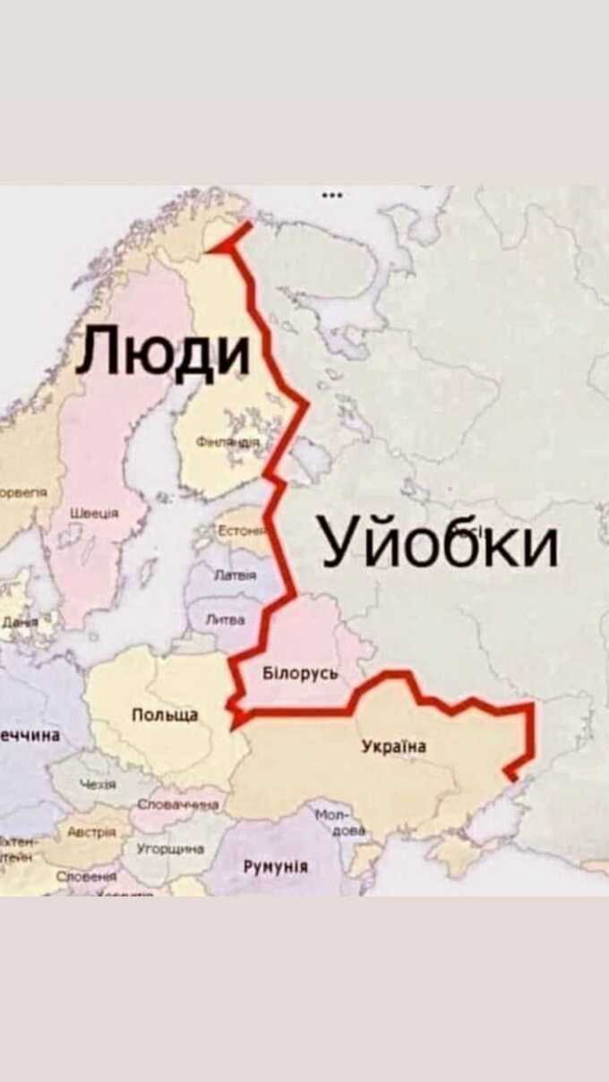 Футболіст опублікував у сторіс інстаграма карту, де на захід від кордонів рф і рб країни позначені як «Люди», а на схід – «***бки».